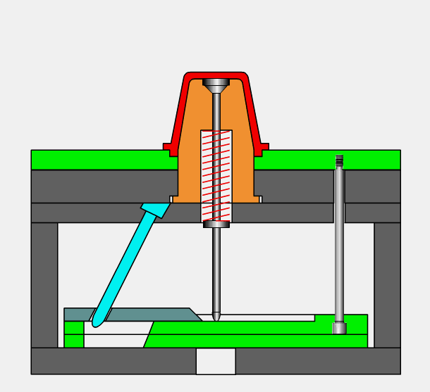 單推板二次推出機(jī)構(gòu)-彈簧式▼